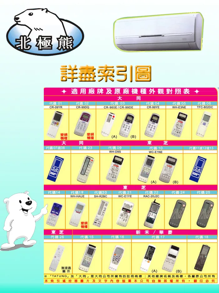適用大同/東芝/新禾/華菱 變頻冷氣全機種